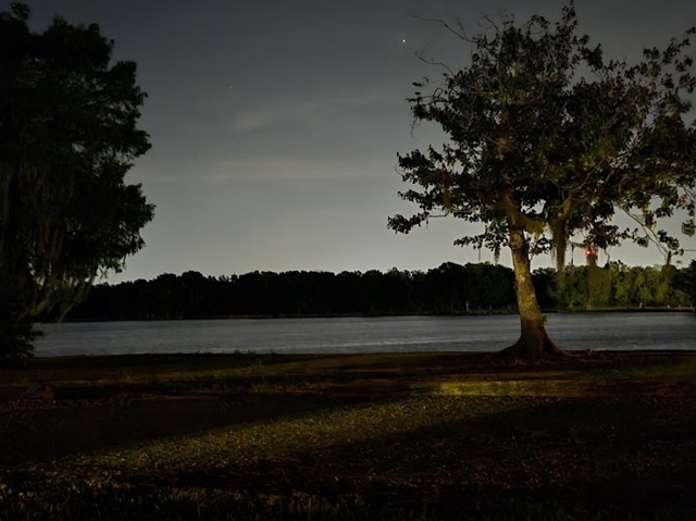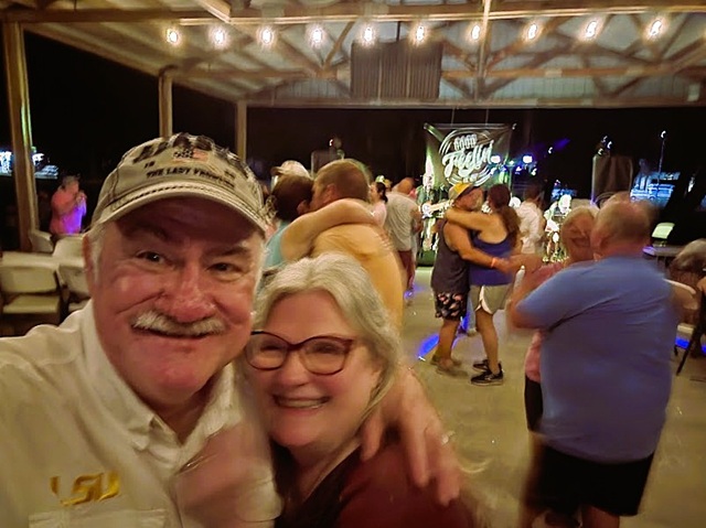 Excellent RV spot 1-17 at Cypress Lake Resort. The park is packed with RVers having a great time.The Good Feelin’ band performed on the stage behind the TomsMaHauL motorhome on a Good Friday night. Great band & entertainers!After a wonderful crawfish dinner w/ family, we were back at Cypress Lake Resort dancing to a great local live band on the stage behind our TomsMaHauL motorhome. The Good Feelin’ band were comprised of great musicians & entertainers. The band & huge (friendly) crowd of other RVers that were visiting this packed park, certainly, had us feelin’ good.____Sitting outside of our motorhome, we enjoyed the evening view at Cypress Lake RV Resort in Berwick (LA).