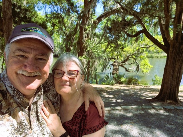 Trippin’ w/ Tom & Teri and the TomsMaHauL motorhome were booked in this spot at Live Oak Landing in Freeport (FL) for several days/nights. During our stay, we enjoyed time w/ family in, nearby, Destin, did some chores & explored the surroundings. After decades of passing by the famous (& always packed) McGuire’s Irish Pub & Restaurant in Destin, we finally stopped in to enjoy an evening dinner.During a very enjoyable day w/ Dad in Destin, we stopped at the American Legion Post 296, where Teri dropped off 2 old & worn American flags, which will receive a dignified & respectful flag disposal ceremony.One afternoon, we made it back to the TomsMaHauL motorhome & enjoyed a stroll around Live Oak Landing along Black Creek.Caution signs were posted, warning of gators, snakes & even Lyme disease (from ticks).We encountered no gators, snakes & ticks.
